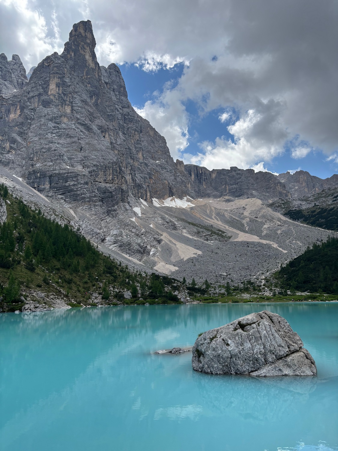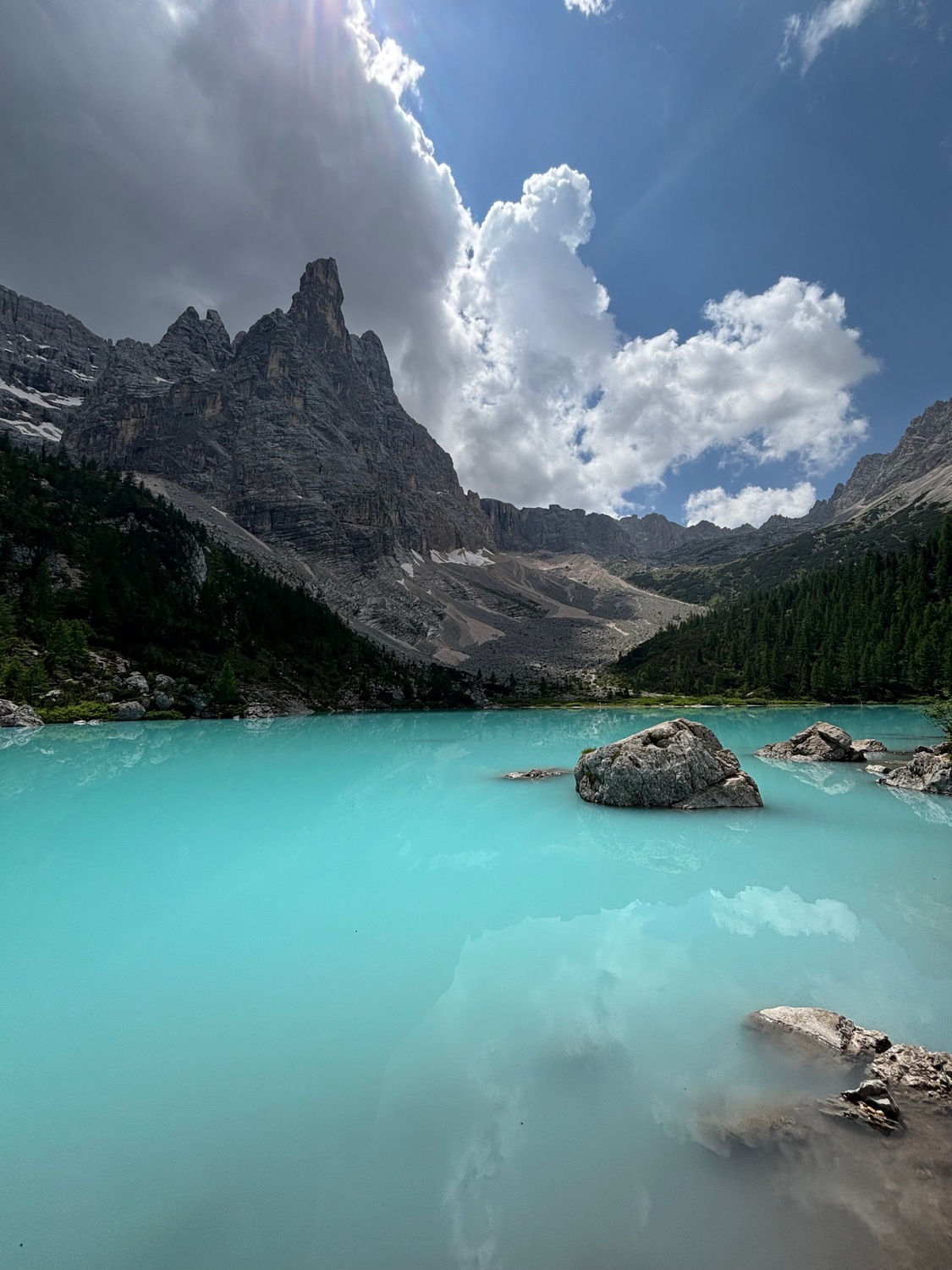 Dolomity to nie tylko strzeliste masywy górskie, malownicze płaskowyże i wysokie przełęcze z niesamowitymi panorami. To także świat wody, a w szczególności górskich jezior, często otoczonych wysokimi skałami masywów. Czasem są na wyciągnięcie ręki, bo wystarczy się zatrzymać przy drodze by z zachwytem popatrzeć na odbijające się w tafli wody górskie szczyty. Takie właśnie jest Lago di Misurina, w których wodach odbija się z jednej strony symbol Dolomitów - Tre Cime di Lavaredo, a z drugiej równie zachwycający masyw Sorapis. Jako, że miejsce jest łatwo dostępne, nad brzegiem jeziora można spotkać wielu turystów. My jednak, podczas naszej górskiej wycieczki, wybierzemy się na trekking w masyw Cadini di Misurina, by również z góry popatrzeć na to jezioro i zachwycić się widokiem z tej perspektywy. W Dolomitach są też jeziora nieco bardziej schowane i już nie tak łatwo dostępne dla każdego turysty. Aby je odkryć trzeba udać się na górską wędrówkę i my tak właśnie zrobimy z Lago di Sorapis. Miejsce to przed wielu turystów wpisane jest na listę jako „must see”. Można zastanowić się, dlaczego akurat to jezioro jest tak popularne. Odpowiedź jest bardzo prosta – to niesamowity kolor wody w otoczeniu wysokich ścian skalnych i gra światła przyciąga tu turystów. Jezioro to z mleczko-turkusową wodą i błękitną taflą wygląda obłędnie. Aby odkryć Lago di Sorapis wybierzemy mniej popularny szlak, by przez przełęcz Marcuoira schodzić z widokiem na jezioro aż do samej tafli turkusowej wody.