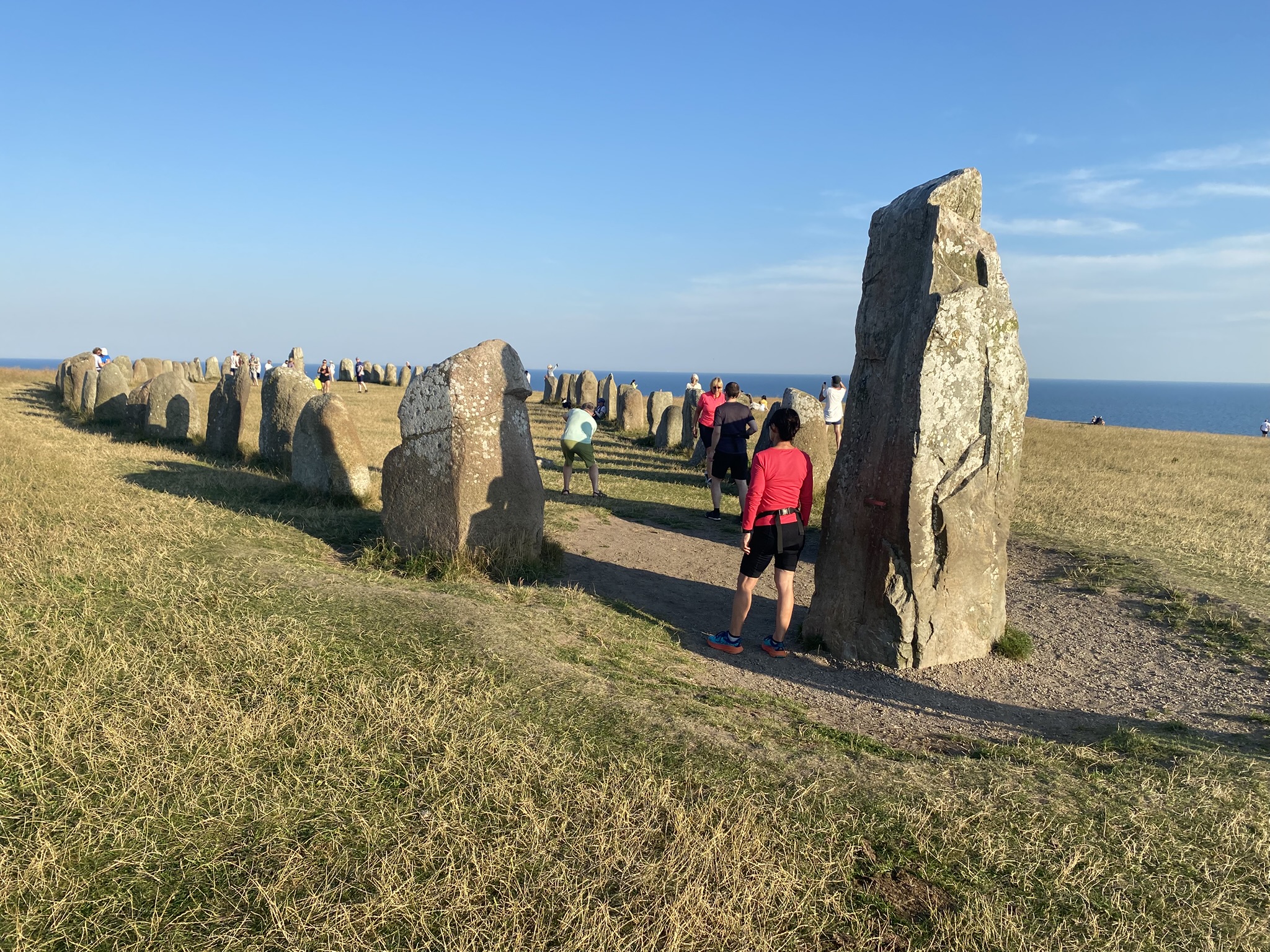 Trzeciego dnia na szwedzkiej ziemi przenieśliśmy się bardziej na południe, rozpoczynając trasę rowerową w Kivik. Tutejsze miasteczko słynie z uprawy jabłek i różnorodnych produktów z nich uzyskiwanych m.in. z cydru. W Kivik mieści się również stanowisko archeologiczne z epoki brązu, czyli kurhan pochodzący sprzed ponad 4000 lat, który mieliśmy okazję zobaczyć. Po pierwszych kilometrach na rowerach dotarliśmy do wioseczki Knabackshusen, gdzie obserwowaliśmy jak Bałtyk zabiera kolejne metry plaży. Dalej dotarliśmy do miejscowości Simmrishamn — niewielkiego, acz przytulnego kurortu nad Bałtykiem, w którym zrobiliśmy sobie krótką przerwę. Dalej ze względu na ograniczenia czasowe nasza grupa podzieliła się na dwie podgrupy. Jedna ruszyła zobaczyć zamek w Glimmingehus, a druga wybrała zaś wodowanie na jednej z najładniejszych plaż w Skanii — Sandhammaren. Ostatecznie cała grupa spotkała się w miejscowości Kaseberga, gdzie mogliśmy zobaczyć ales stenar — kamienny kompleks przypominający brytyjskie Stonehenge.